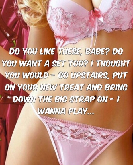 Sissy strapon lingerie caption
